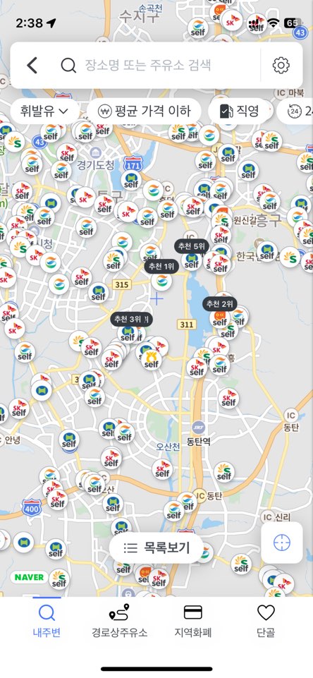 1. 오일나우 어플을 깔아보면 주유소와 전기차 충전하는 곳이 먼저 나옵니다.