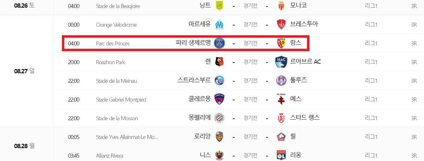2023년 8월 27일 (일) 새벽 4시 파리 생제르맹 vs 랑스